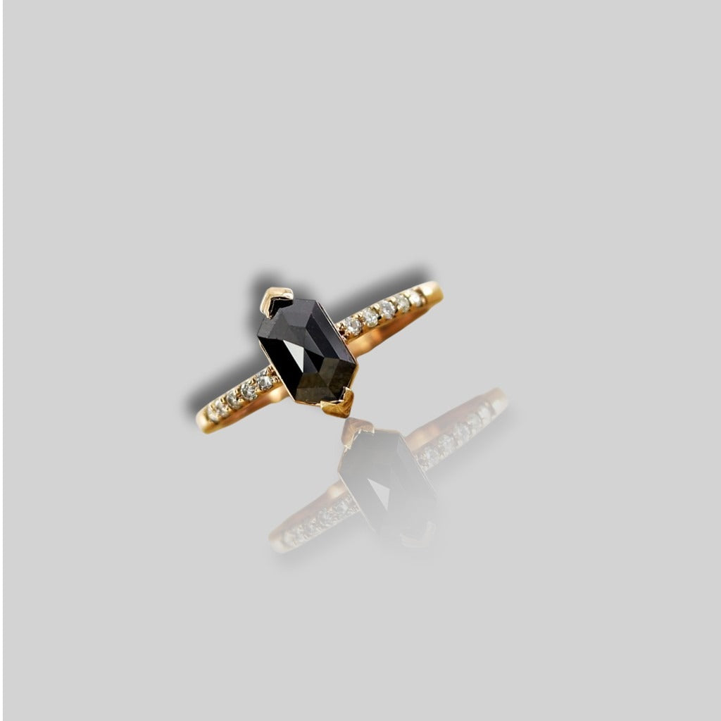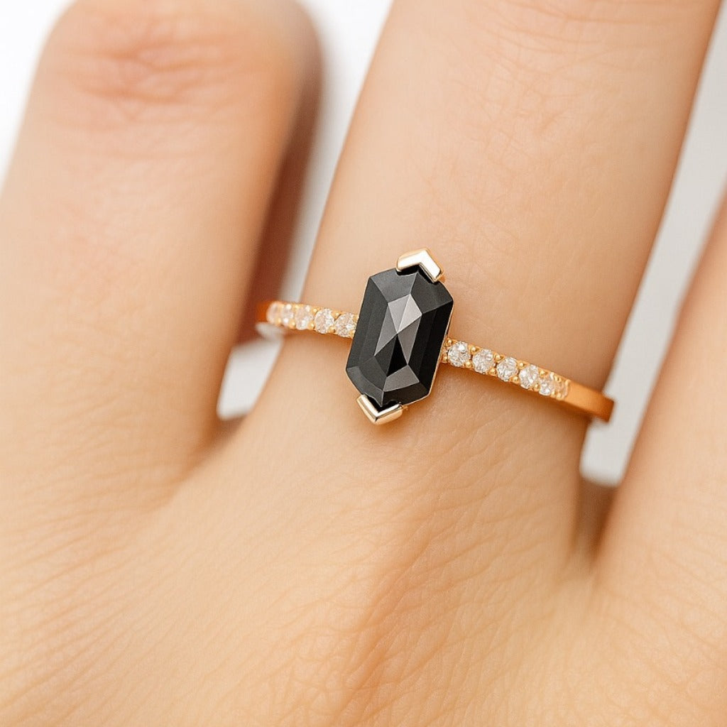 Emerald-Cut moissanite Black Diamond Gold Ring